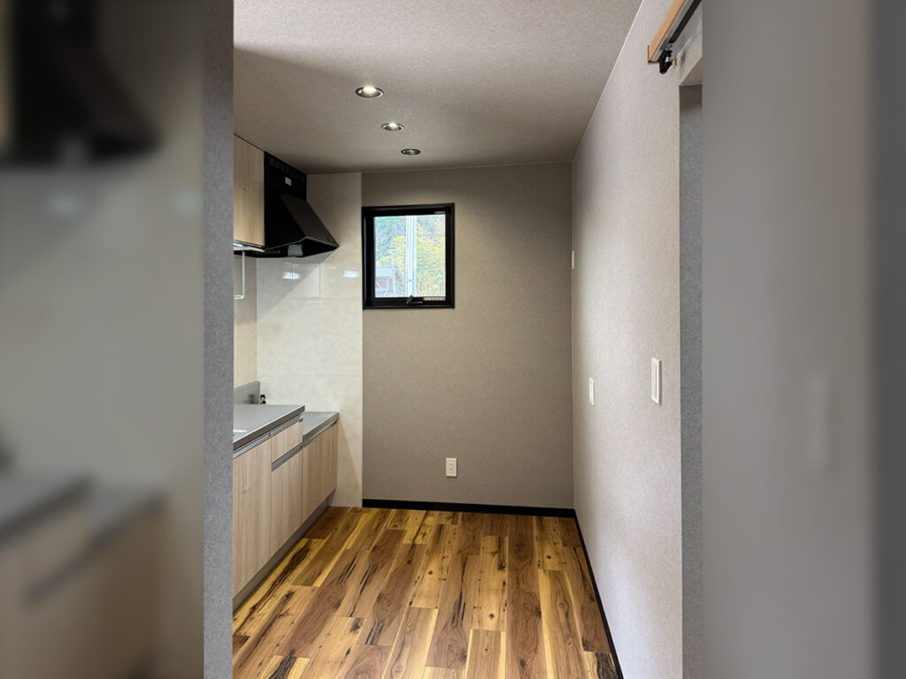 一方のコンテナにはキッチン・バス・トイレなどの水回りを集約し、日々の暮らしをコンパクトにサポート。